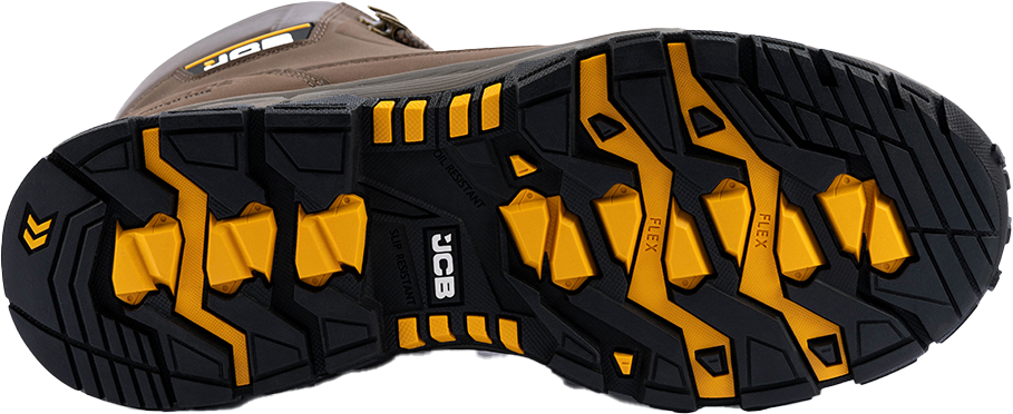 JCB safety shoes, grey PU action leather with ENERGYMASTER-memory foam insoles with arch support, EVA midsole + rubber outsole, lightweight
